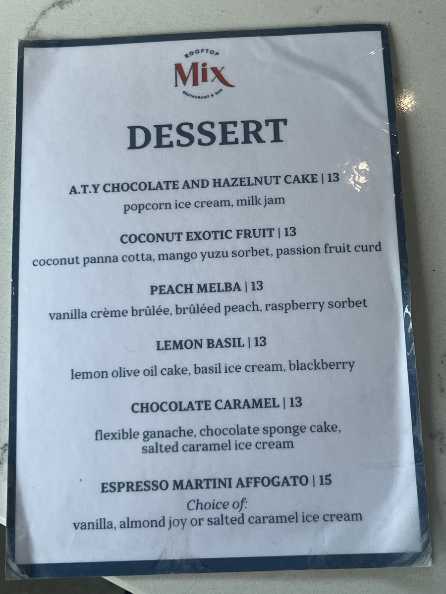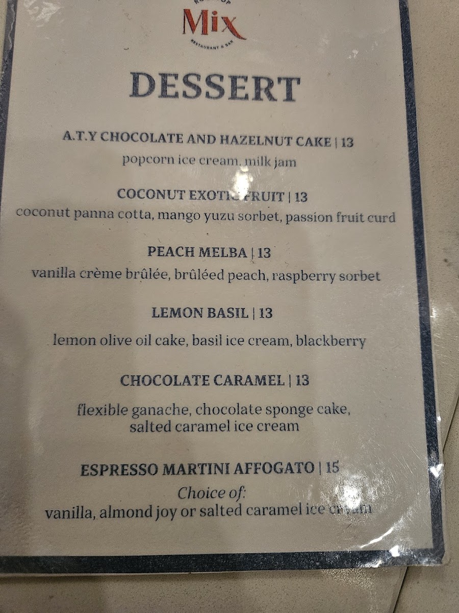 Mix Restaurant & Rooftop Bar Menu (2025 Update)